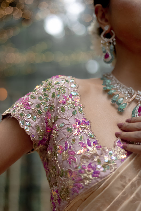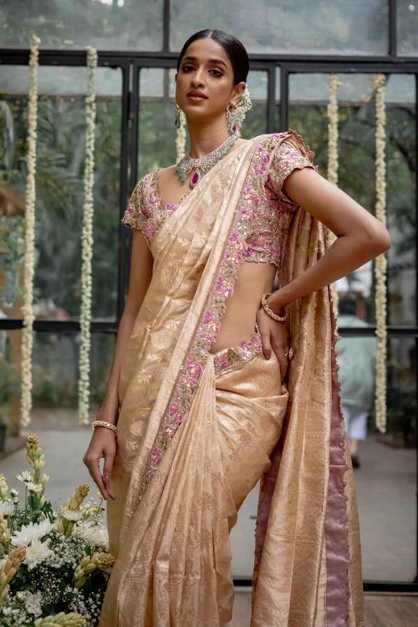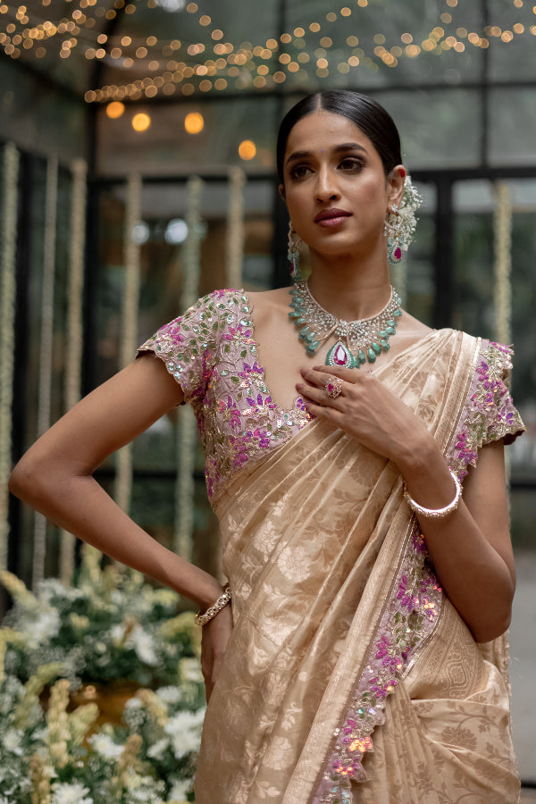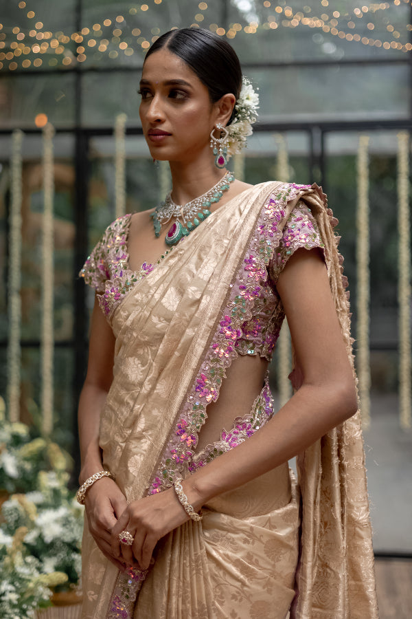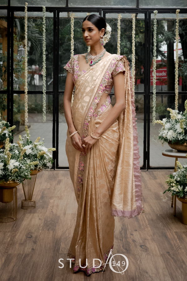 A symphony in Banares adorned with signature studio149 blouse details, this saree is an ode to Indian craftsmanship at its most elegant best.