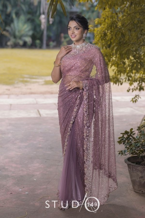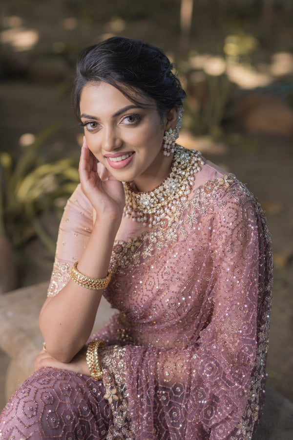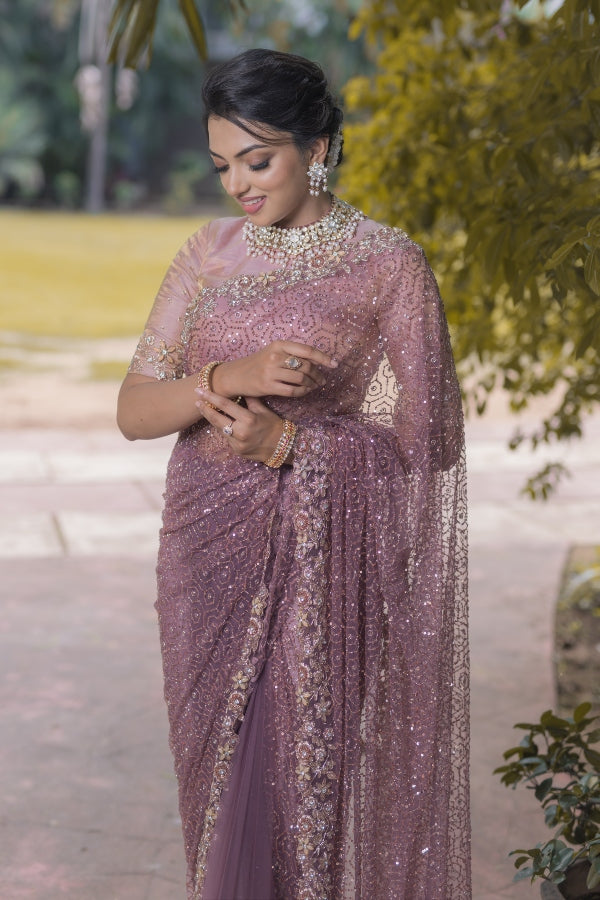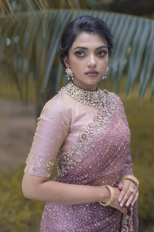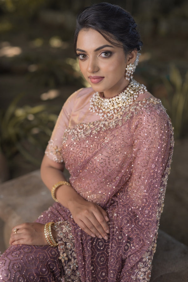 Richly adorned with hand embroidered saree paired with designer blouse, this is a perfect bridesmaid saree.