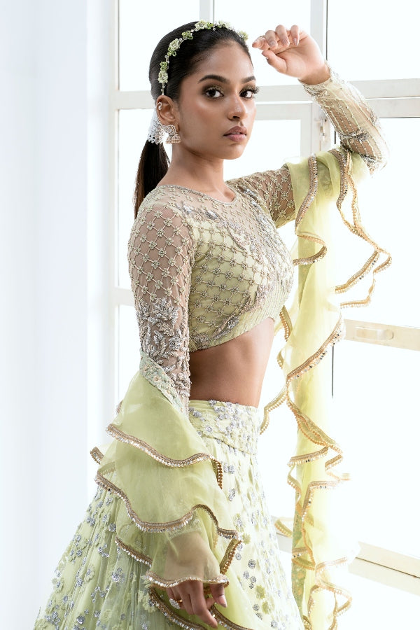 PASTEL BRIDAL LEHENGA IN MINT GREEN