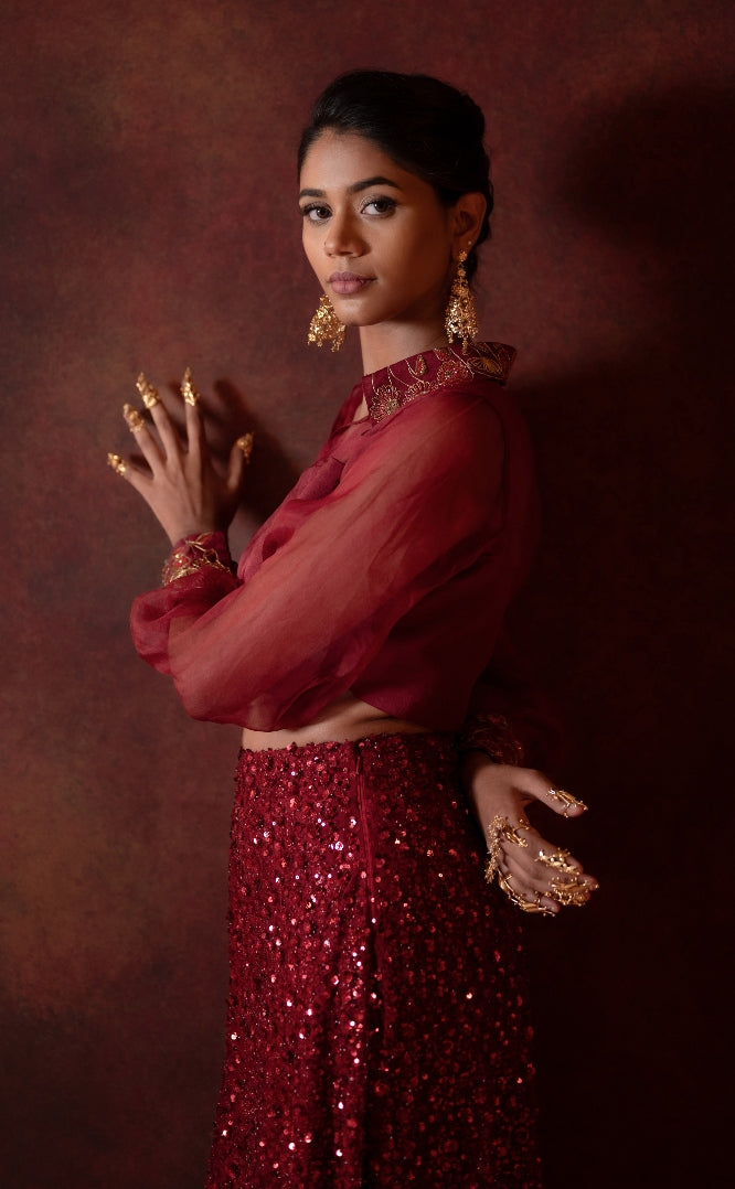 DESIGNER CROPTOP SET IN BURGUNDY
