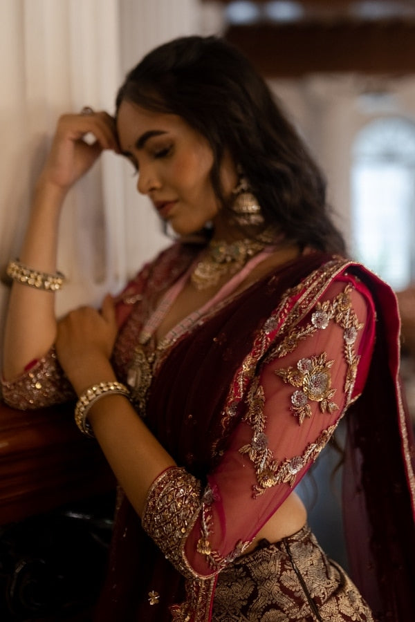Blouse – Hand embroidered silk with Tulle sleeves